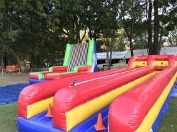 - OCCUPANCY: A maximum of 5-6 kids of equal size at one time for bounce houses, and 1 person at a time for slides is what most inflatable manufacturers recommend.