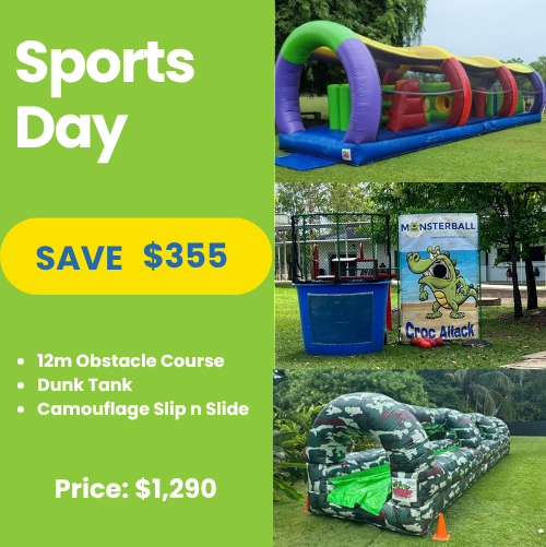 Designed for the ultimate end-of-season celebration, this bundle includes a crowd-favourite Dunk Tank, a fast-paced Obstacle Course, and a thrilling Slip ‘n Slide for endless competition and laughs.